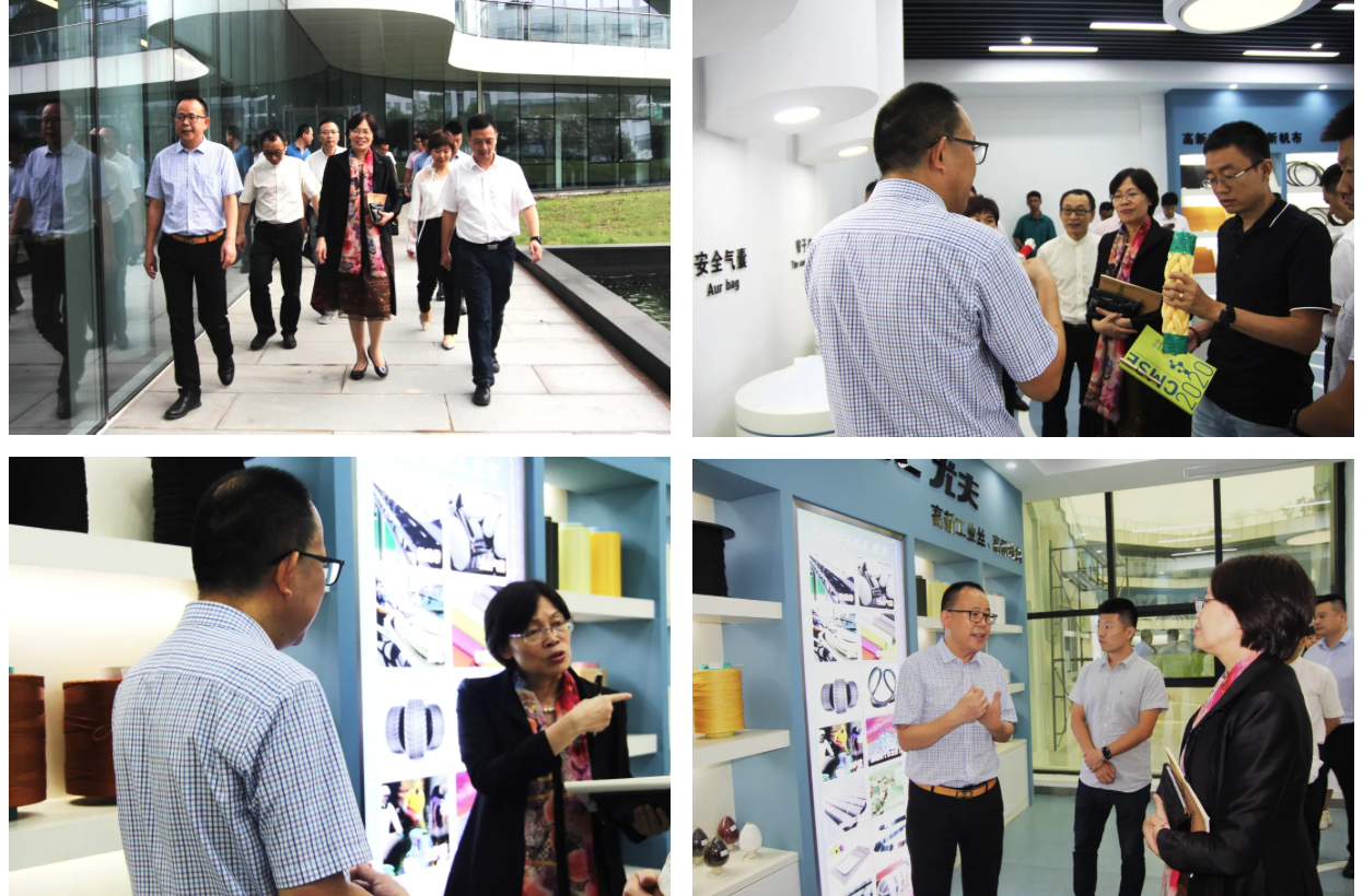 8月29日下午,東華大學朱美芳院士一行在湖州市政府各級領導的陪同下蒞臨我司。尤夫股份銷售副總高先超、研發副總宋明根、生產副總王鋒、行政人事副總邰焜、化纖板塊財務總監毛鑫等高層領導熱情接待并全程陪同。